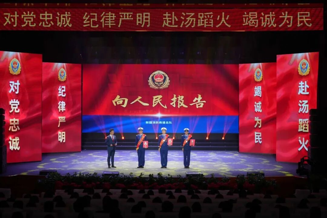 整台情景报告会紧紧围绕习近平总书记授旗训词精神,以“向人民报告”为主题,呈现了积极、热情、勇敢、拼搏的正能量。2023年全区消防宣传月活动启动仪式在现场观众的热烈掌声中圆满结束。